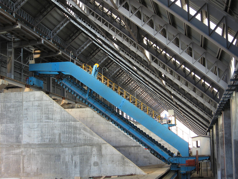 The full portal reclaimer is usually matched with the slewing side boom stacker or traveling tripper.